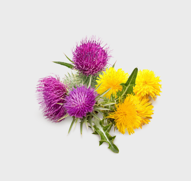 Milk thistle contains silymarin, a flavonoid that supports liver function and detoxification. Dandelion root aids the liver by removing toxins and boosting bile production.